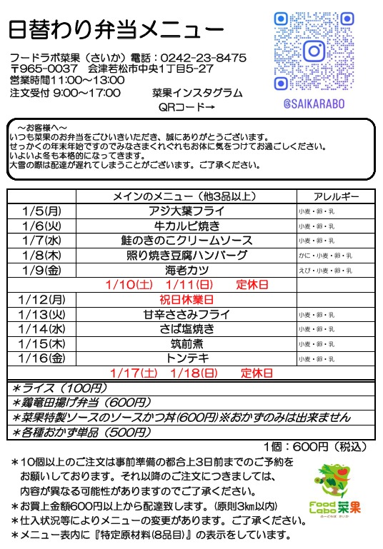 いつも菜果のお弁当を食べていただき、誠にありがとうございます!