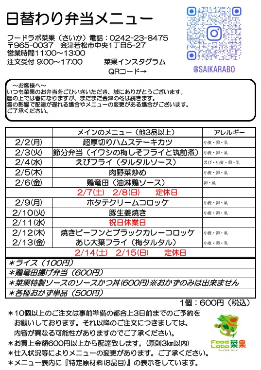 2026.1.28 菜果メニュー更新しました!
